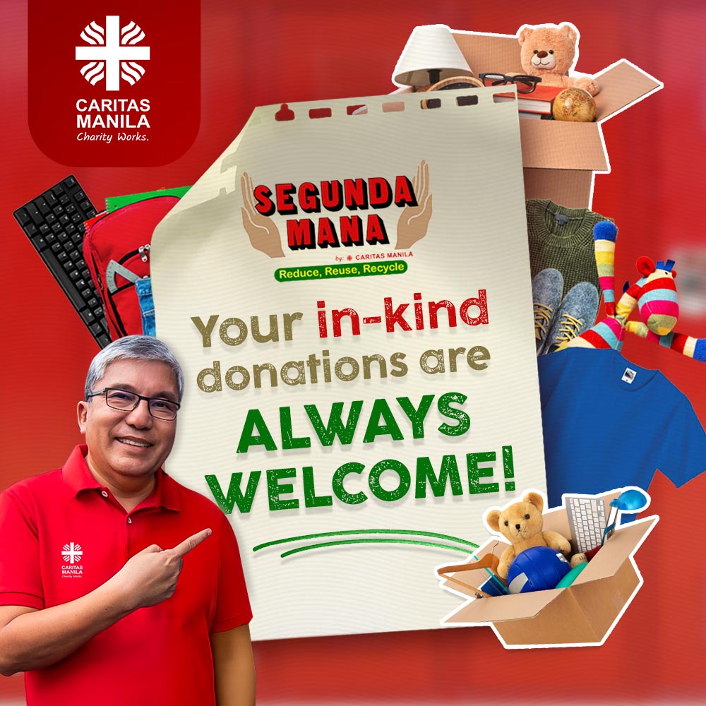 Segunda Mana is Caritas Manila’s program that makes helping easy. Simply donate items you no longer need or have too much of.
